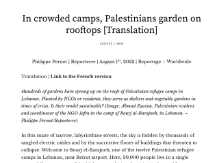 Hundreds of gardens have sprung up on the roofs of Palestinian refugee camps in Lebanon. Planted by NGOs or residents, they serve as shelters and vegetable gardens in times of crisis. Is their model sustainable? (Image: Ahmad Zaazou, Palestinian resident and coordinator of the NGO Jafra in the camp of Bourj al-Barajneh, in Lebanon. – Philippe Pernot/Reporterre)